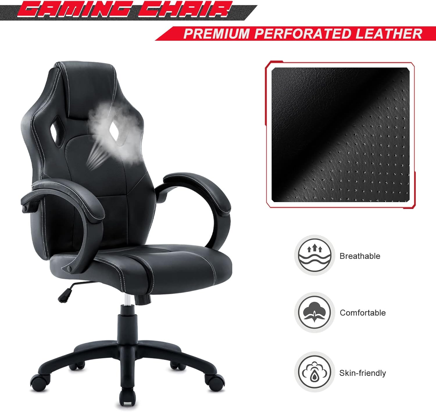 Vinalfy - Chaise de jeu ergonomique en cuir