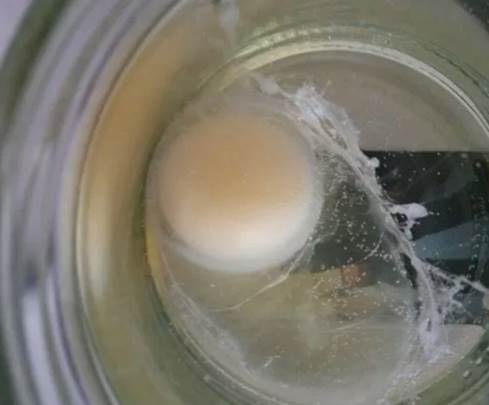 Spoiled egg white. Approximately the same thing happens with the secret of the prostate during prolonged abstinence.
