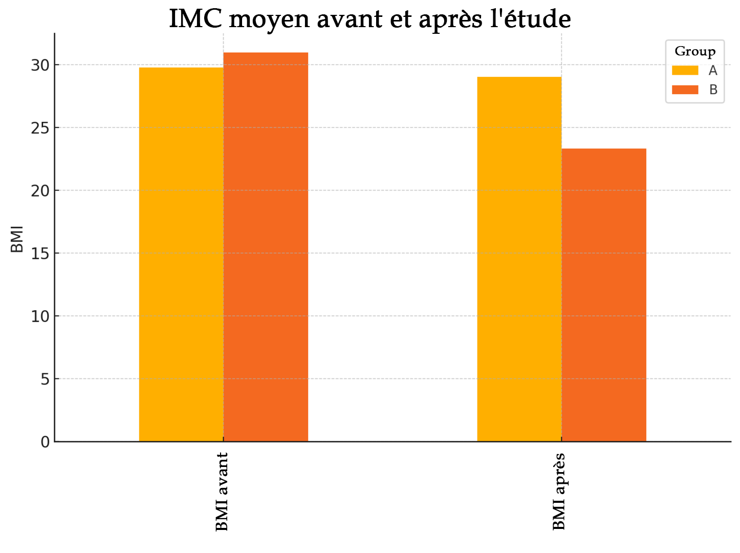 Les résultats de l'étude se sont également reflétés dans l'IMC des sujets testés. En moyenne, le groupe B a pu réduire son IMC de la limite supérieure de 32 à 23 plus bas.