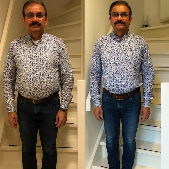 See how Vikram Deshmukh dropped from 225 pounds to 180 pounds in a month: