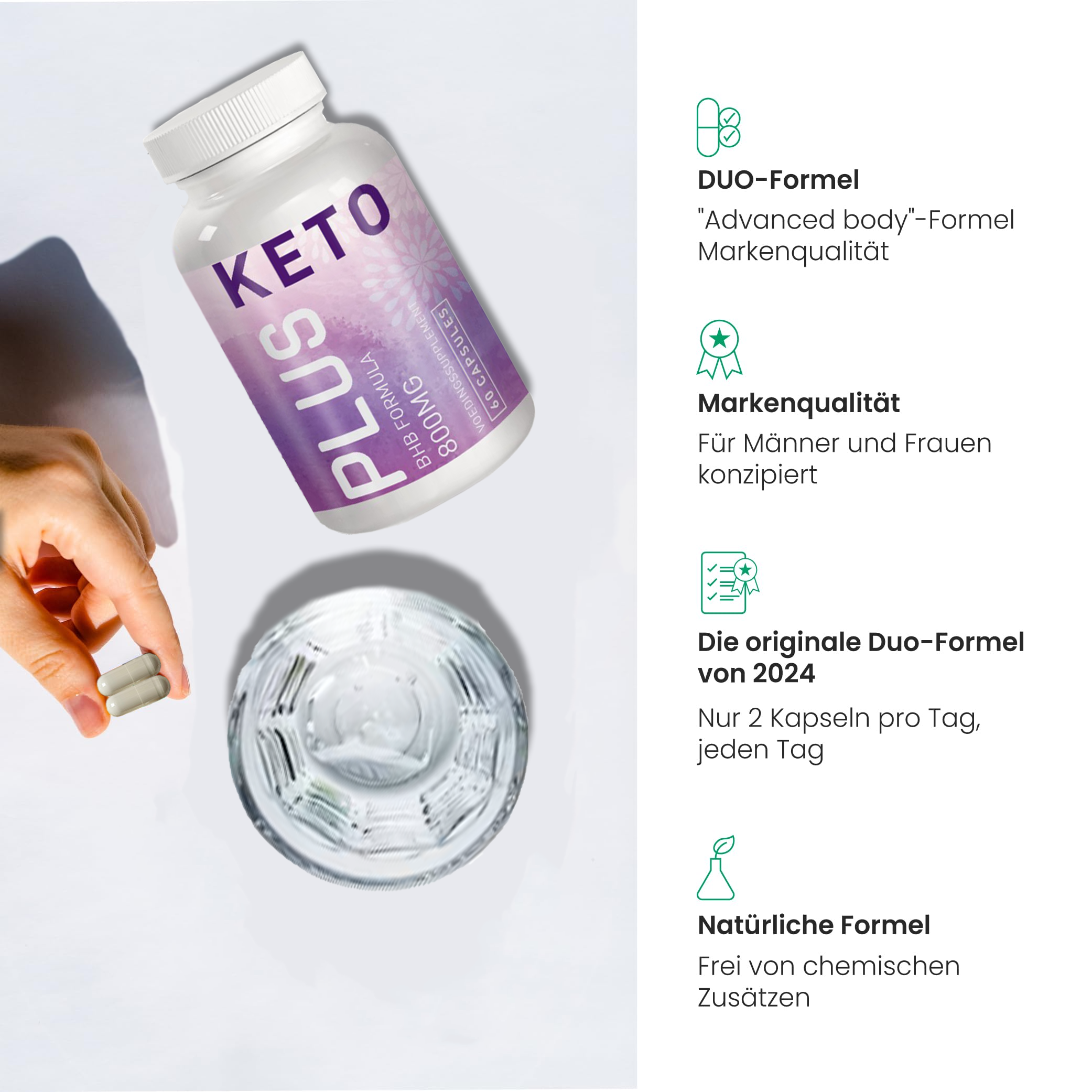 - die hochdosierten Keto Plus werden durch die spezielle Formel von der Magenschleimhaut sofort aufgenommen