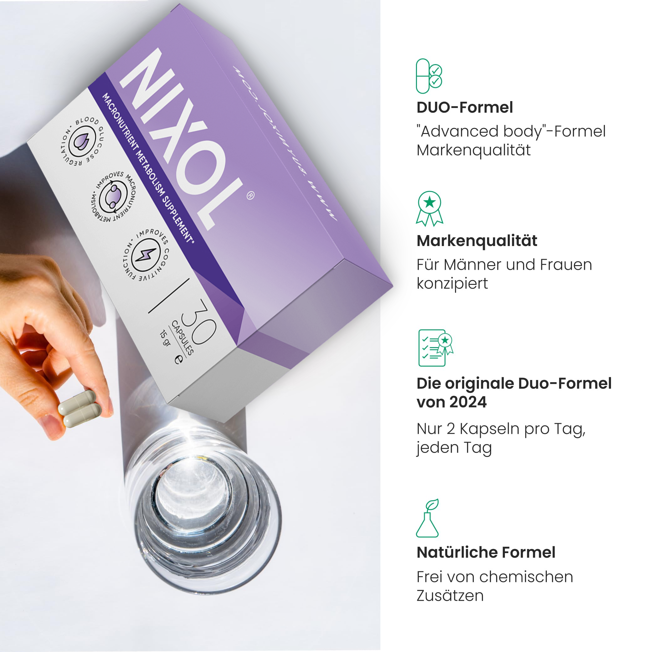 - die hochdosierten Nixol werden durch die spezielle Formel von der Magenschleimhaut sofort aufgenommen
