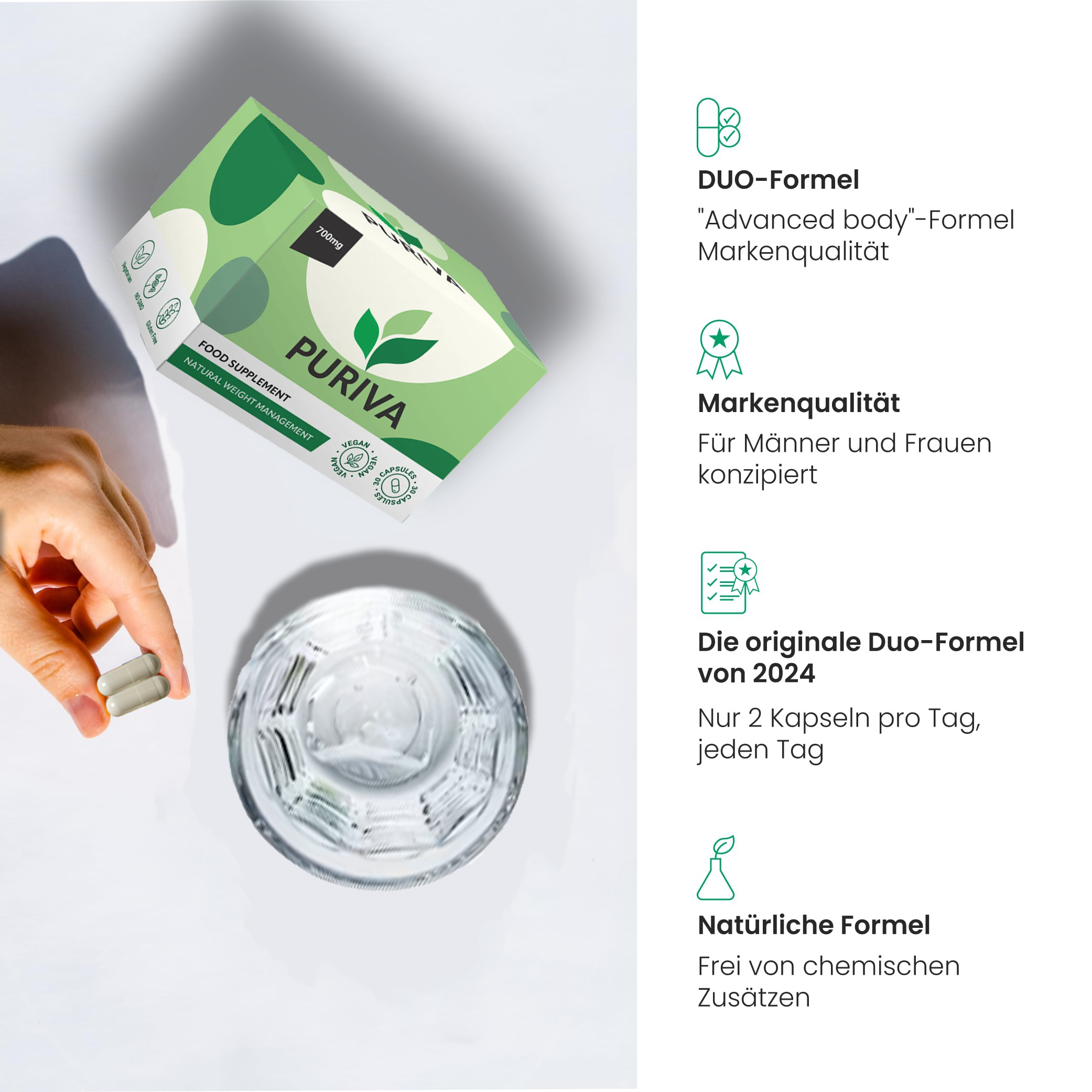 - die hochdosierten Puriva werden durch die spezielle Formel von der Magenschleimhaut sofort aufgenommen